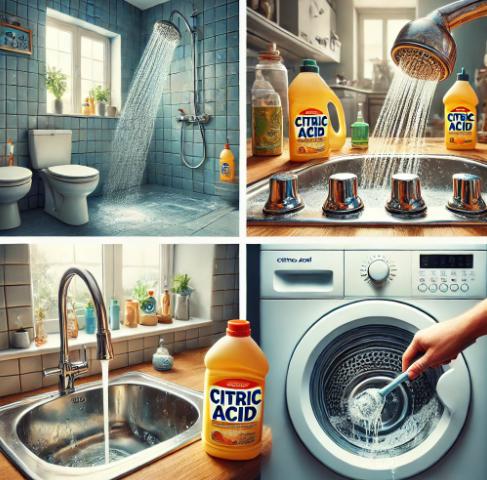 次にクエン酸は、家庭での掃除に非常に役立つ天然の酸性成分で、特に水垢やカルシウムの沈着物、石鹸カスなどを効果的に除去できます。以下は、クエン酸を使った掃除のポイントをいくつかご紹介します。