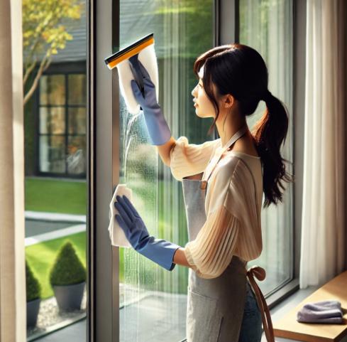 ガラスは水垢やホコリがつきやすく、放置すると見た目が悪くなります。中性洗剤とスクイージーを使った基本的な窓掃除方法を解説します。
