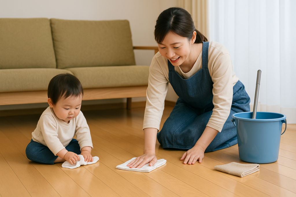 【プロ仕様:水拭き&乾拭き併用で家具の塗装を守る床材ケア法】 フローリングや家... -